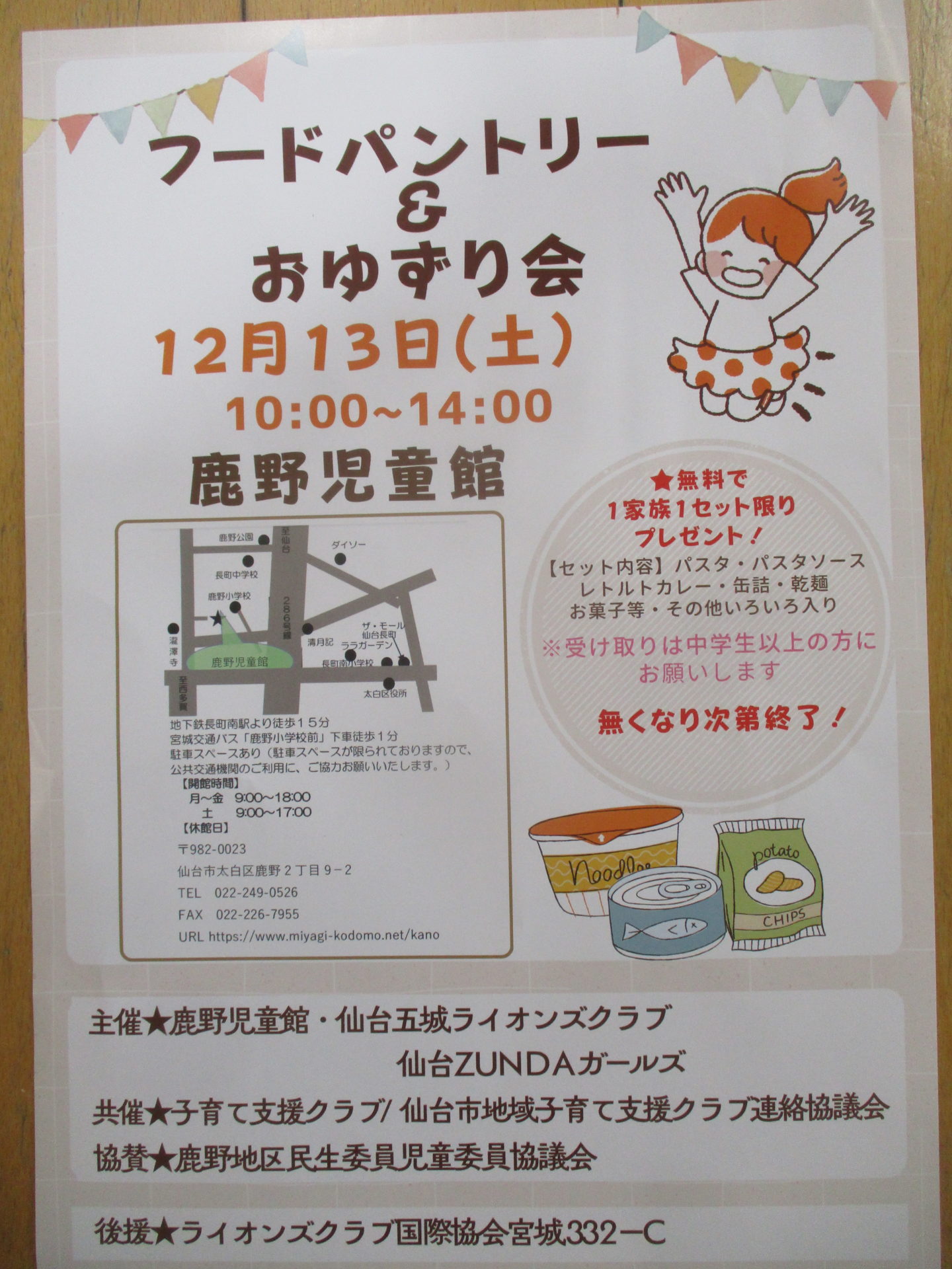 ◆フードパントリー・おゆずり会◆【2025年12月13日(土)】