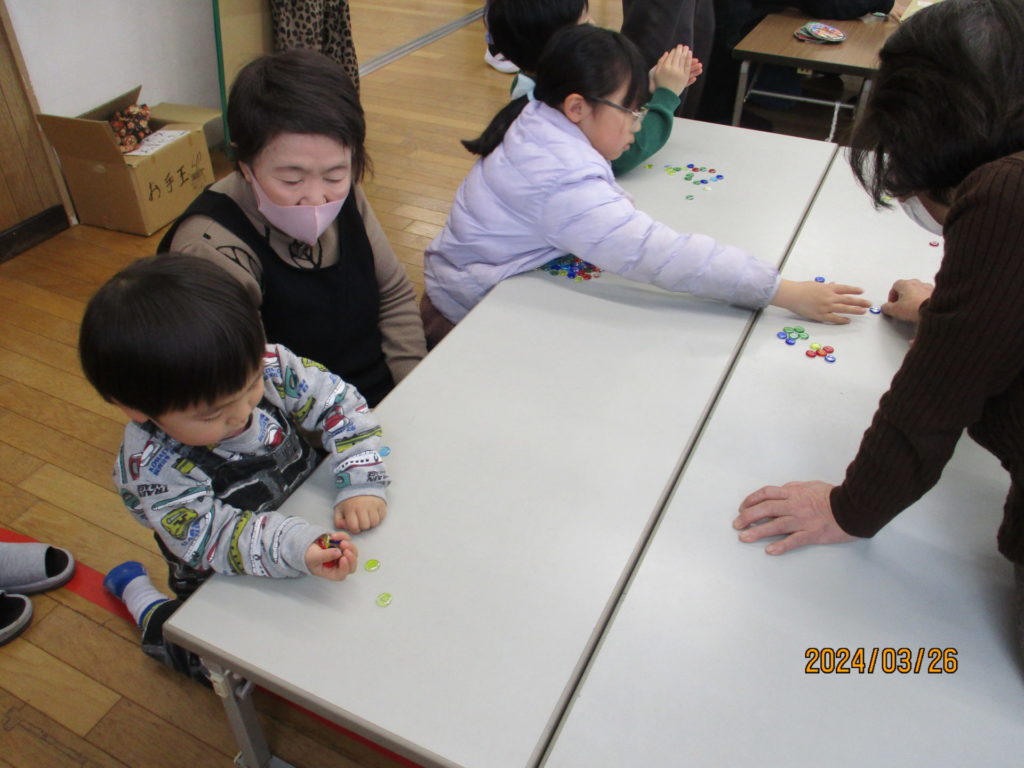 ♪伝承遊び♪ 2024年4月25日 地域の方々と一緒に、「お手玉遊び」「竹馬」「おはじき」「ベーコマ」「めんこ」「紙鉄砲、紙飛行機」をして 沢山遊びました。時間を忘れるくらいみんな夢中になって大はしゃぎでした。 各コーナーから笑い声が響いて「今度はいつ伝承遊びできますか」と聞いて次回開催を楽しみにしている姿が見られました。いつも子ども達を温かく見守ってくださりありがとうございます♪ 西部児童センターブログ