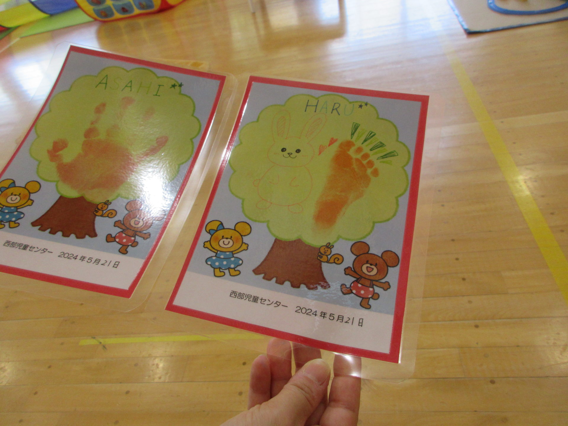 来館者へは「手形のプレゼント」があり親子でペタペタ上手にできました。