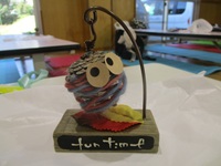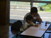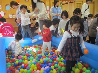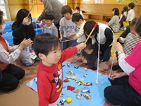 はじめに,ミノムシスタンドの工作を行い,その後は,輪投げ,ボールプール,魚釣りゲームを楽しみました。
