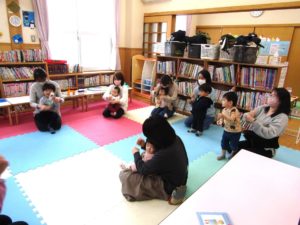 3月8日(金)おはなしの小箱では、春のお話を中心に手遊びやふれあい遊びをしました。