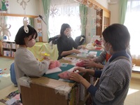 民生委員児童委員さんのお子さんを見守っていただいたお母さん方は,羊毛フェルトのマスコットづくりを存分に楽しまれていました。