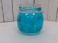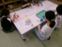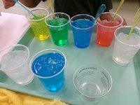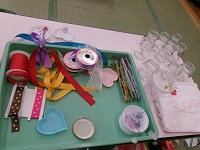 色付き保冷剤を選んで,無色との重ね方,ビーズ,キラキラパウダーなどの入れ方等,工夫をたくさんして思い思いの「虫よけ」を作りました。