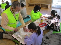 2月のかめのこ工房は,民生委員児童委員の方々のご協力をいただき,「するめ天旗凧作り」と「凧あげ」を行いました。