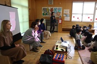 自作の国旗,スライド,言葉の紹介,紙芝居や伝言ゲーム,質問タイムなどの楽しいプログラムに参加した方々も満足した様子でした。