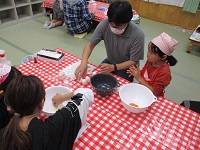 親子で一緒にパンケーキを作りました。