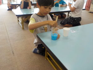 好きな色の絵の具を混ぜて、キレイなカラフルスライム完成🎵