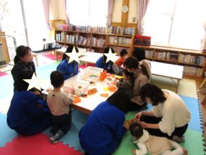 職場体験の中学生と一緒に、手遊びや工作をしました。