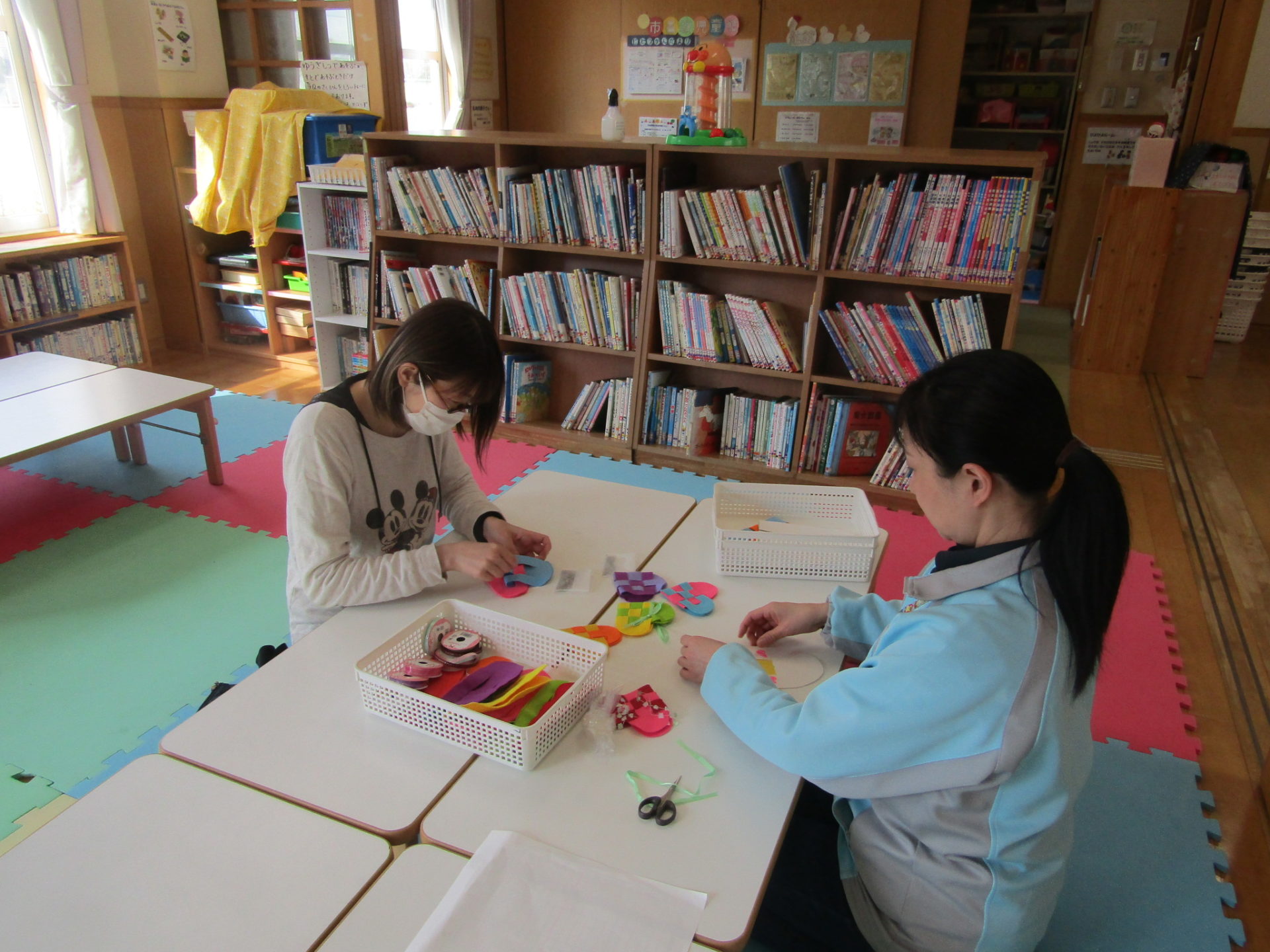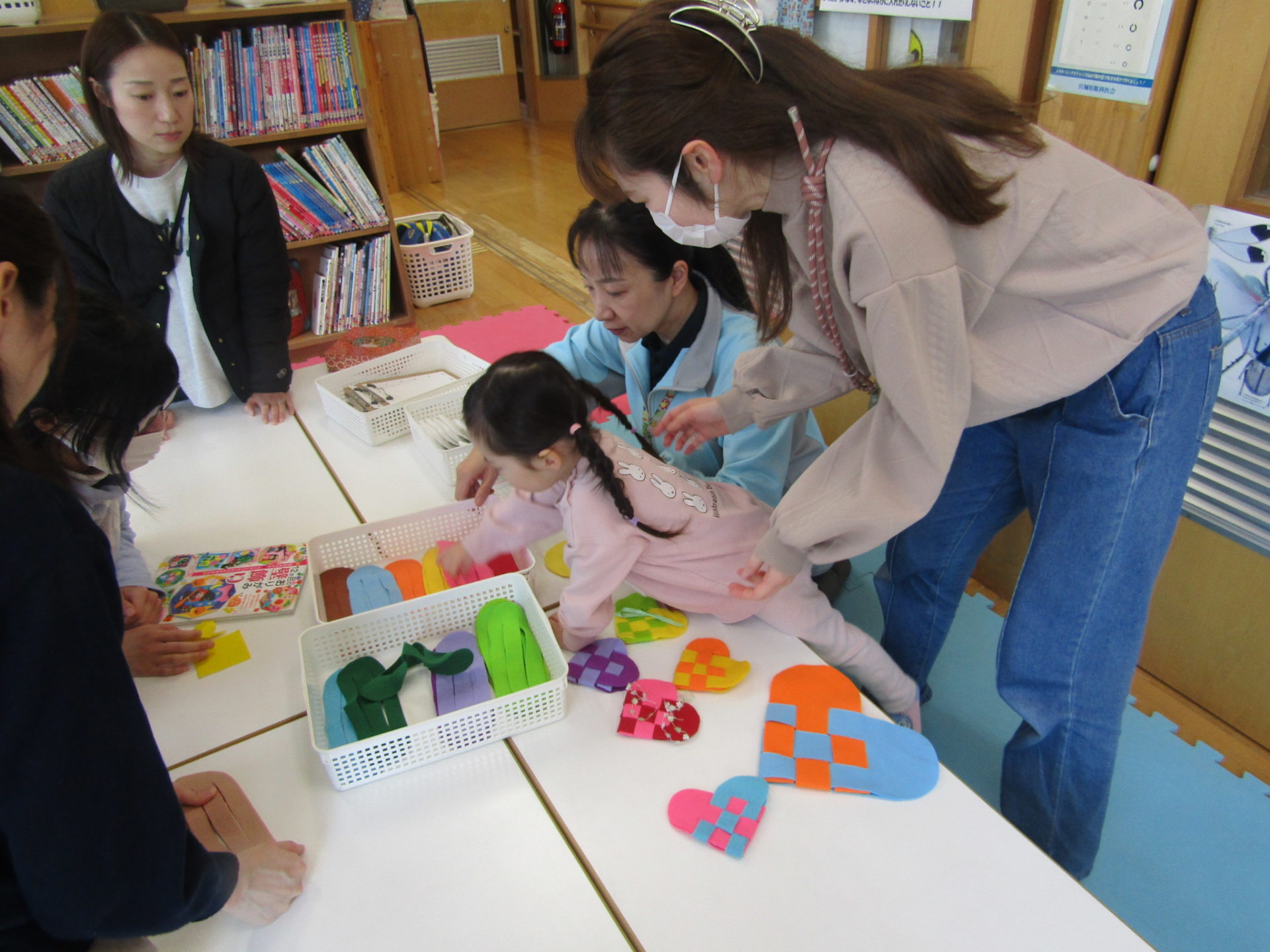 本日、乳幼児親子対象のぴよぴよサロンで「ハートのサシェ」をつくりました。