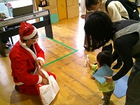 ➀手遊び,②体操,③クリスマスにちなんだ「ジングルベル」の歌,④好きな楽器を選び「ジングルベル」の歌に合わせて演奏,⑤クリスマスカード作り,⑥サンタさんからのプレゼント・・・の順番で行いました。