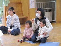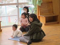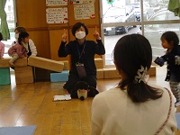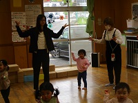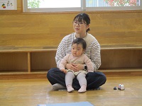 最後にスカーフを使った手遊び「じーじーば」「にぎりぱっちり」「上から下から」を行い,ふれあい遊び「さよなら」をしました。