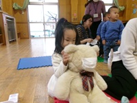 2月の「わいわいタイム」は,手遊び「らららぞうきん」を楽しんだり,さんぽの歌に合わせて体を動かしたり,「コンコンクシュンのうた」を楽しみました。