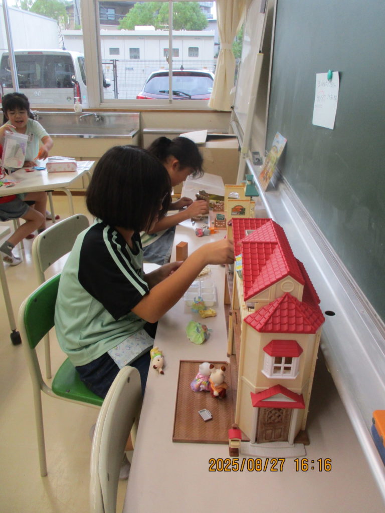 本日、サテライト室にとてもかわいいシルバニアファミリーセットが入り、こどもたちが喜んで楽しく遊ぶことが出来ました♪