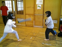 午前中に行ったニュースポーツ「スポーツチャンバラ」に17名の子供たちが参加。