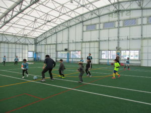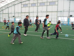 小学生はチームに分かれて思いっきりサッカーを楽しみました。