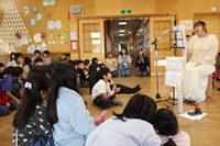 子どもたちは初めて見る学期に驚いたり,きれいな歌声に癒されたりしながらコンサートを楽しんでいました。