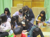春休み最後の日は,明治乳業の方においでいただいて,みんなで「マーブル万華鏡」づくりに取り組みました。
