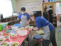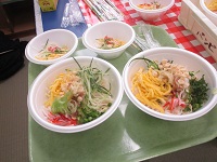 最後に「サラダうーめん」のおふるまいがあり,みんなにこにこ笑顔になりました。