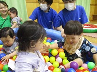 乳幼児親子21組,44名に参加していただき,バンビさんにボランティアをしていただいて大盛況で『七夕会』を無事に実施することができました。