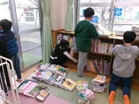 ①児童クラブ室,廊下,②窓・サッシ,③本棚,図書工作室,④遊戯室の4グループに分かれて,職員と子供たちで1年間の感謝の気持ちを込めて大掃除を行いました。