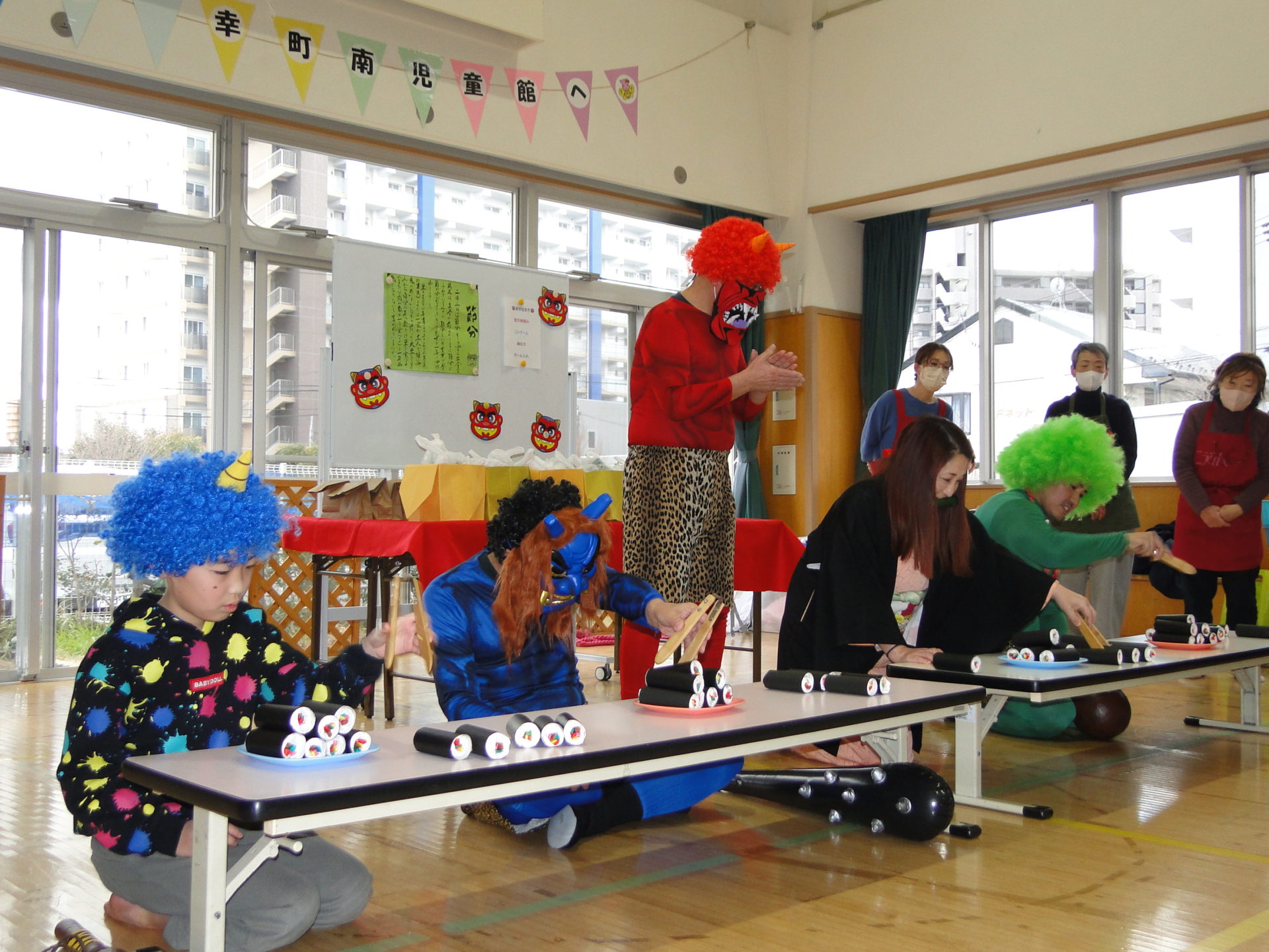 2月1日(土)に,子育て支援クラブこうなんさんとの節分。豆まきの行事がありました🎶