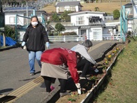 いつもお世話になってる子育て支援クラブ「バンビ」の皆さんに,花壇にきれいな花を植えていただきました。