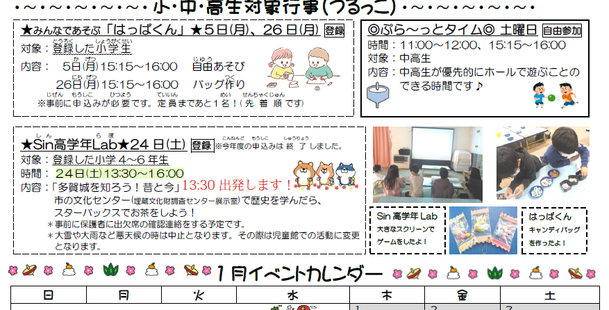 一部かんだよりには「15:00~16:00」となっていますが、正しくは「13:30~16:00」です。(多賀城駅方面へ徒歩でお出かけするため)