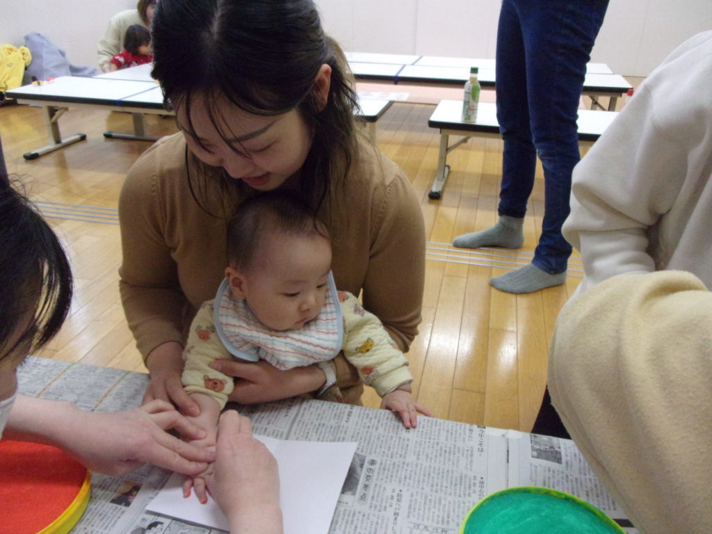 2月22日(木)子育て支援クラブみやぎ~の主催「手形でおひなさまアートを作ろう!」を実施しました。
