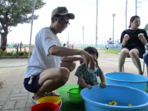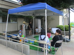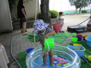 毎週土曜日は乳幼児親子さんが水あそびを楽しんでいます♪