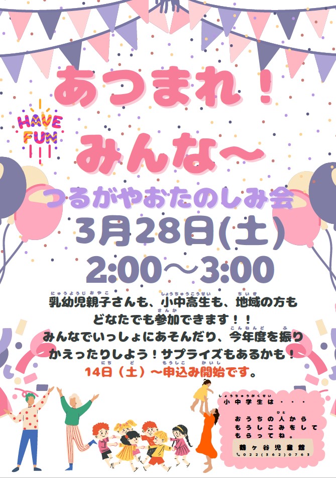 3/28(土)あつまれ!みんな~つるがやおたのしみ会