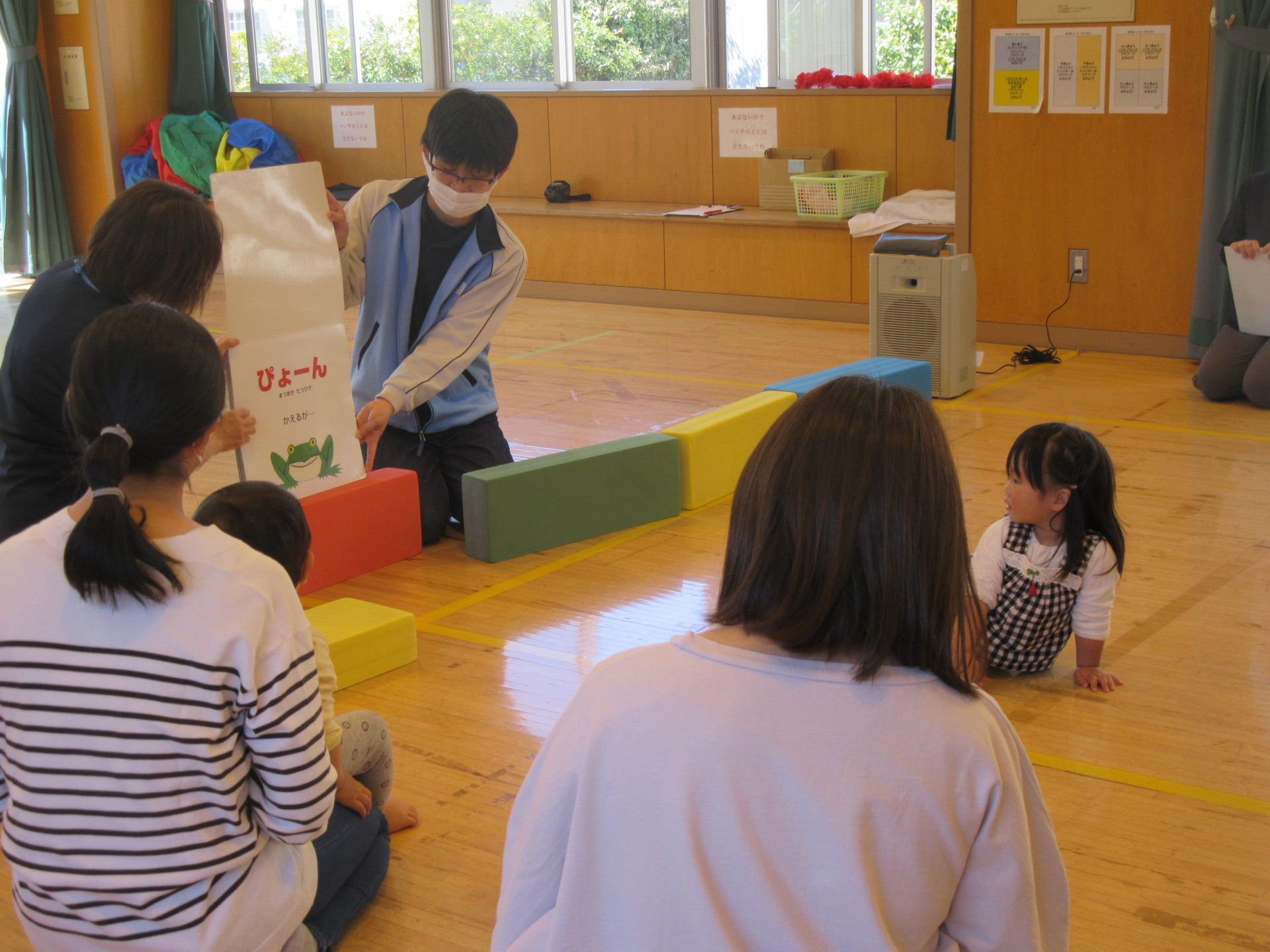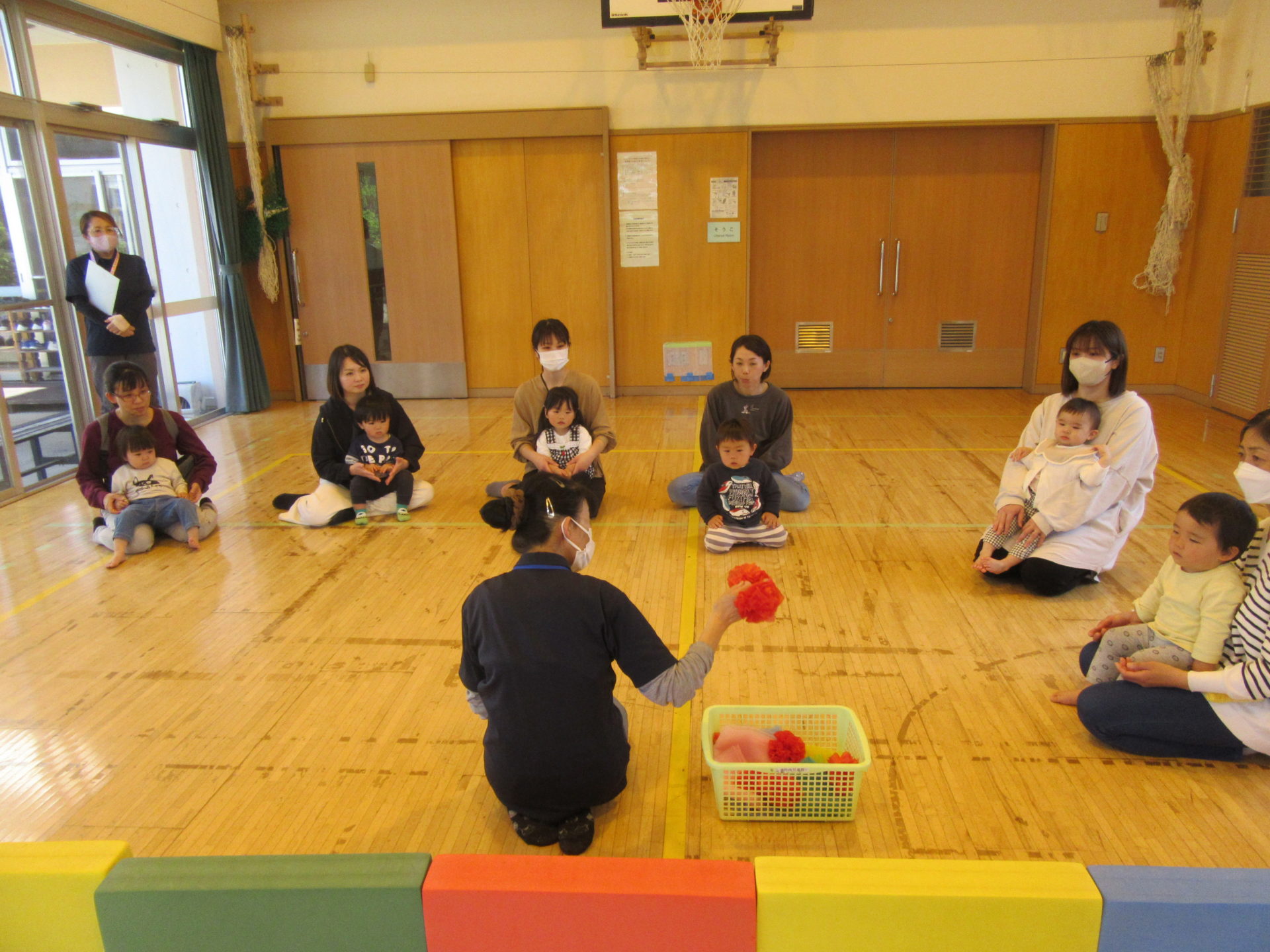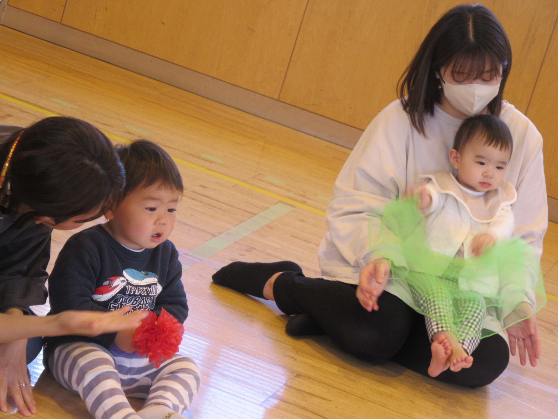 さいわいくんのダンス,ぷちぷちお話会の大型絵本,よちよちドロップの手遊び,最後は大きなパラバルーンなど盛りだくさんな内容でした🎵