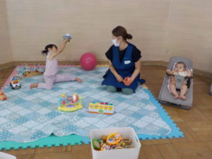ママたちが頑張っている間、子どもたちは託児スタッフと職員と一緒におもちゃ遊びをして待っていましたよ⭐