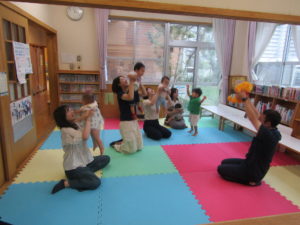 わらべうた「どんぐりころちゃん」の歌に合わせてこどもをたかいたかい~!