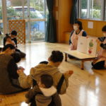 高砂保育所子育て支援室さんをゲストに, 親子のふれあい遊び・歌遊びを楽しみました。 お家でも真似をしたくなる遊びや絵本などがいっぱい♪ お子さんに人気の絵本「だるまさんと」や,アンパンマンキャラクターも登場し,みなさん大…