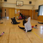 今回は走の運動です。二人一組になり,連係プレーで宝をゲットするゲームをしました。がいこつマンも登場し,大いに盛り上がりました♬