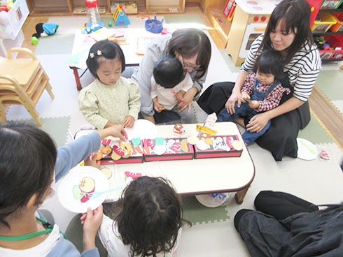 | おおむね月1回 1歳半以上 10:30~11:00 0~1歳半 11:15~11:45 | 乳幼児親子 | 0・1歳児以上の親子向けのわらべ歌あそびの時間です。 |